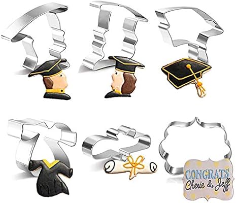 طقم 6 قطع من قطع قطع الكعك التخرج 2019 لحفلات التخرج من الفولاذ المقاوم للصدأ بسكويت فندان لتزيين الكعك لتزيين الكعك شهادة شهادة التخرج ذكر إناث إطار لوحة الطبيب Amazon Ae